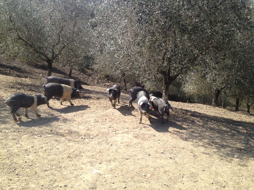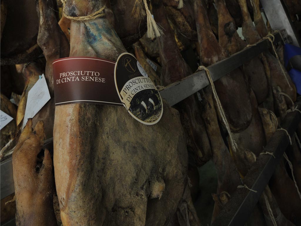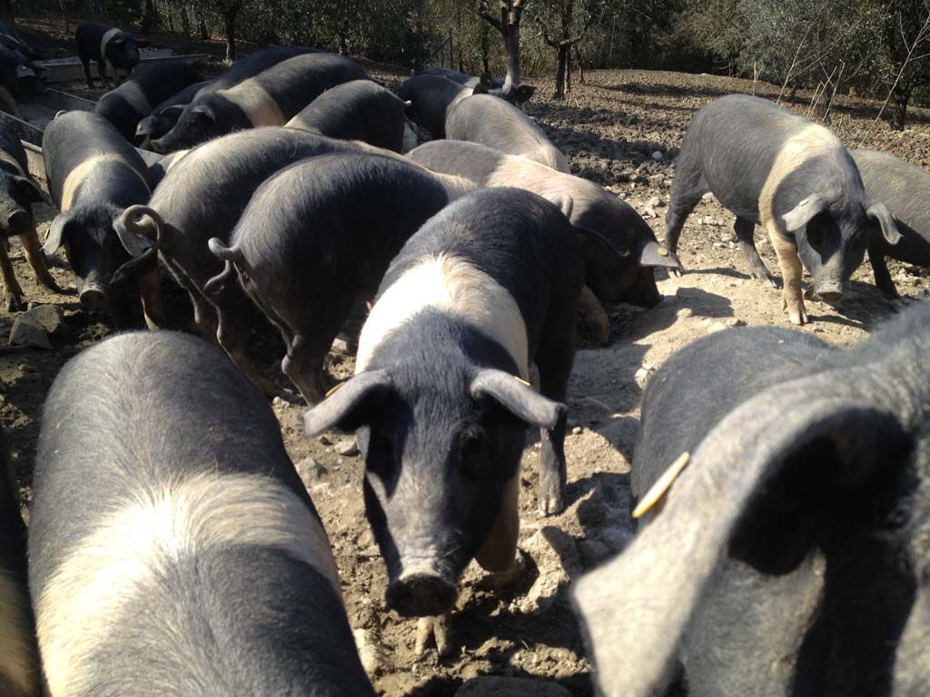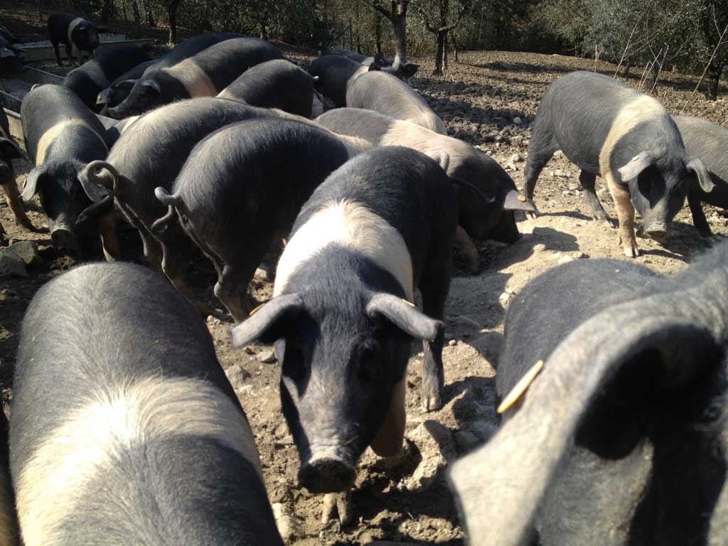 Our farm breeding is a closed circuit and at the moment there are about 1000 animals (mainly Cinta Senese, but also wild boar and Italian pig). Their feeding is made of a flour blend grinded in the mill located inside our farm.